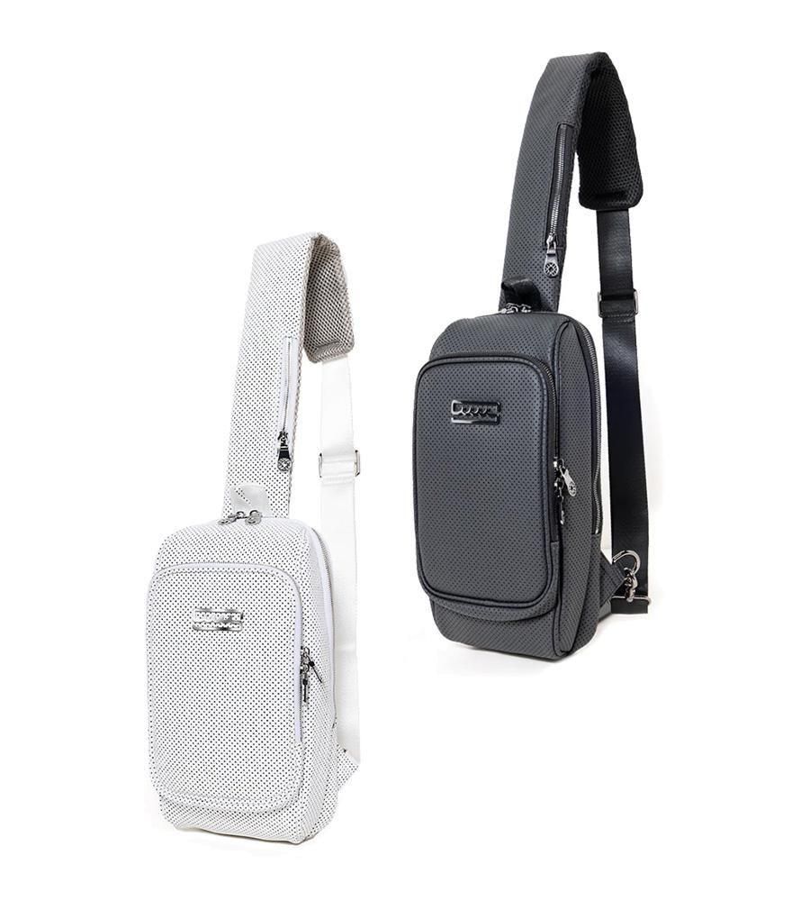 パンチング加工が立体感を生みさりげないアクセントになり、コンパクトながら多様なポケット配置ですっきり収納が可能。