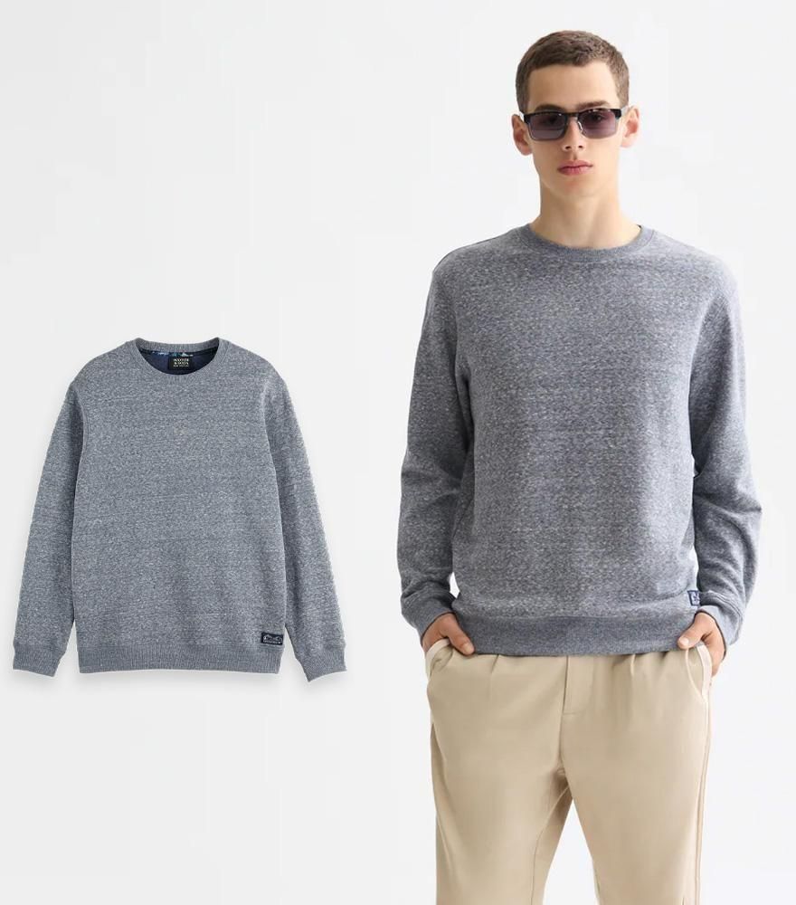 柔らかなメランジ生地を使用したクルーネックスウェット。