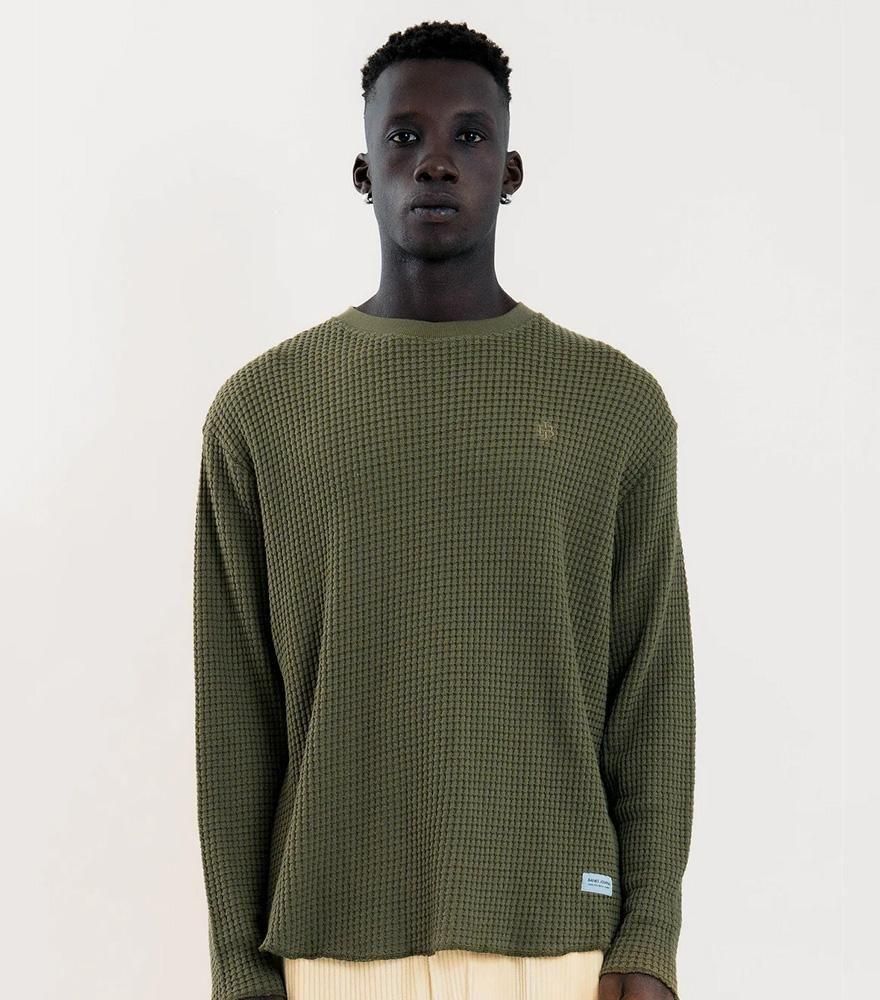 無骨な雰囲気を残しながら、コットン素材を採用してポップコーン編みで仕立てられたふっくらとした質感で遊び心を演出。